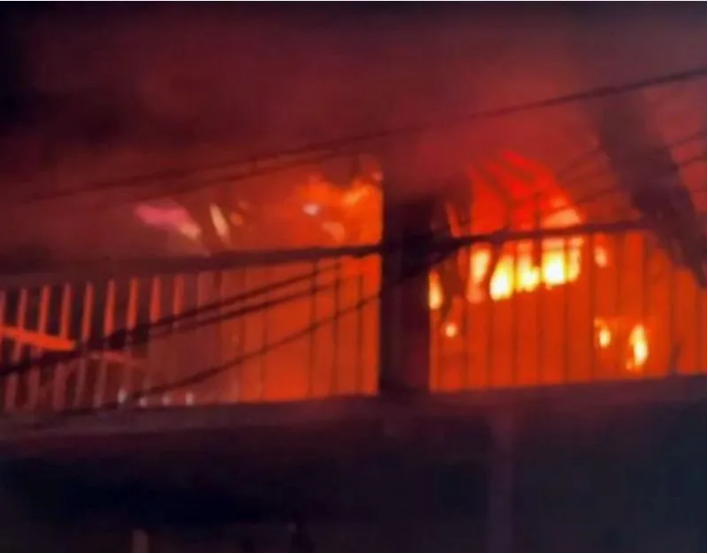 高雄市凤山区一处茶叶工厂18日凌晨发生火灾。图源:台媒